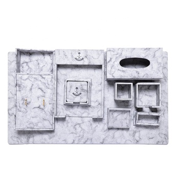 Conjunto de organizador de mesa de 9 peças em couro marmore para escritório de escritório de luxo, acessório de escritório para escritório, Arábia Saudita
